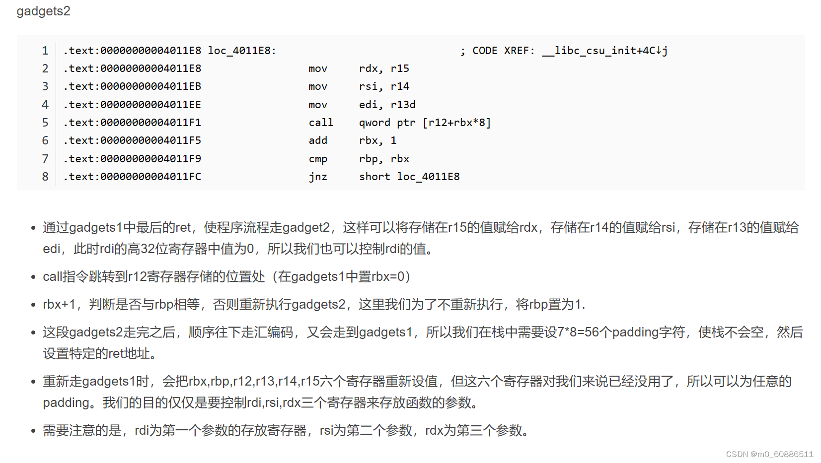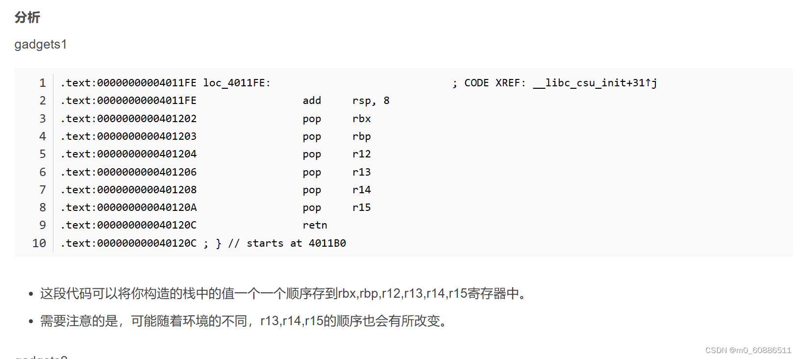 # 下面借用别人在IDA摘出来的__libc_csu_init函数的汇编指令