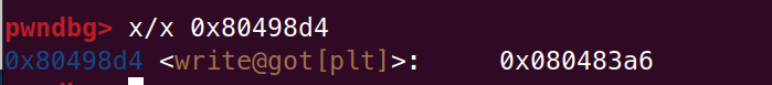 得到第一次调用write的地址,在gdb中下断点b *0x80485a6 ,然后运行