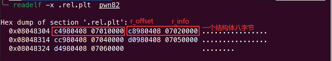 .rel.plt存放内容(命令readelf -x .rel.plt 程序名):